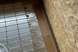 LT- vloerverwarming op de begane grond en eerste verdieping. Zogenaamde “droogbouw” Houtvezelplaten van 30mm dik waarin de buizen liggen tussen aluminium lamellen. (WIP)