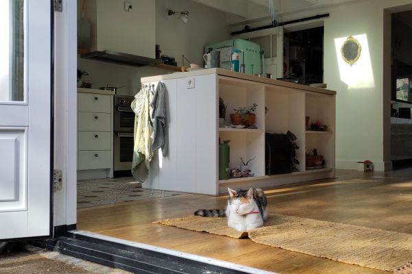 We huren deze woning van de bank sinds eind juli 2017. De woning was gedateerd en daarom hebben we deze gestript tot er alleen nog muren stonden en een dak op zat. Oude uitbouw en tussenbouw weggesloopt. We wonen hier met 5 personen, waarvan drie jongens uit 2009, 2011 en 2013