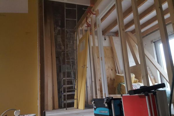 Pavatex houtvezelplaten voor tussenwanden bovenverdieping met leemstuc