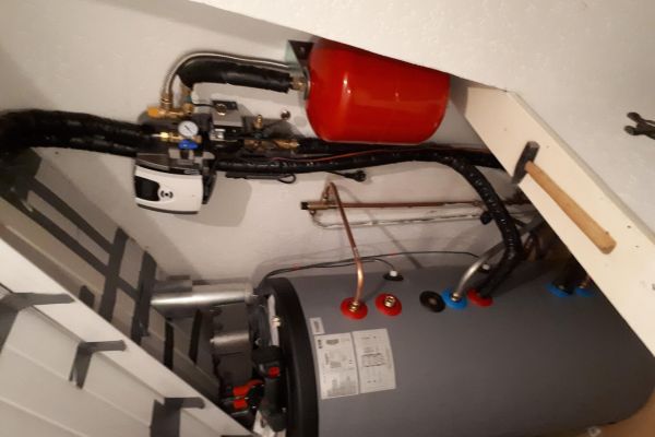 Pellet kachel ,infrarood paneel badkamer en electr. vloerverwarming en voor de fun een kleine windturbine