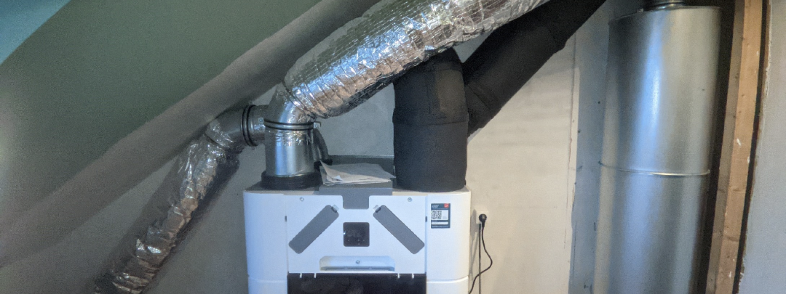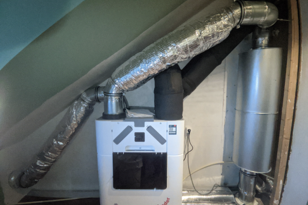 Als iemand die gevoelig is voor geluid bevalt de mate van geluidsisolatie mij enorm. De straat hoor je nog maar weinig met geluidswerend glas en op de zolderkamers het dikke pakket aan glaswol. Het ventilatiesysteem is stil en zuinig en wint met de enthalpiewisselaar het vocht ook terug, zelfs met dagenlange vorst blijft de luchtvochtigheid in huis tussen 40-50%. De al geplaatste warmtepomp die er al was toen we het huis kochten is voor 95% stil geworden door de stalen frame op veren. Maar helaas nog te veel geluid ’s nachts in de slaapkamers. Dus tussen 22:00-8:00 uit.