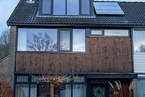 Jaren ’70 hoekwoning gemoderniseerd in de buurt van de huidige maatstaven, met extra aandacht aan geluidsisolatie. Volledig geïsoleerd, hybride warmtepomp, zonnepanelen, balansventilatie met warmteterugwinning en een airco.