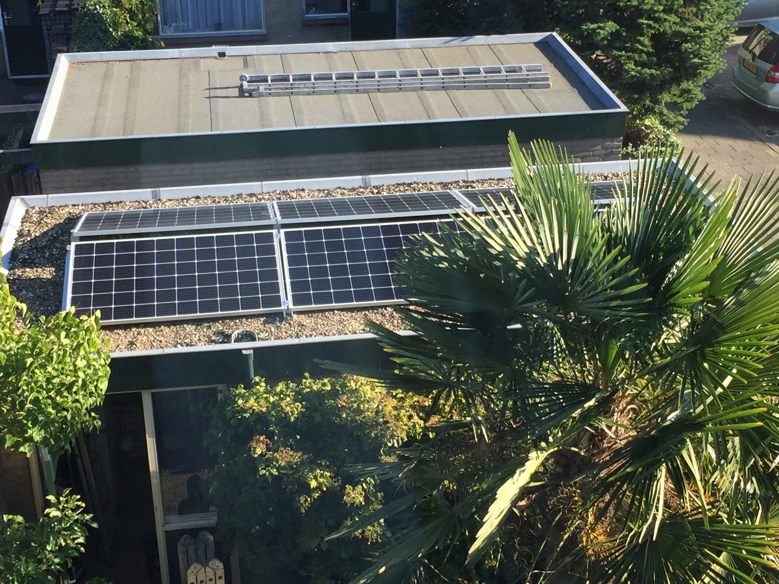 Op de garage hebben we 6 zonnepanelen aangebracht.