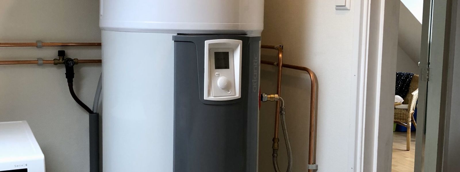 We hebben monobloc warmtepomp die zorgt voor de verwarming en koeling van het huis. Het warm water in de badkamer komt uit een aparte warmtepompboiler. Voor warm water in de keuken hebben we een kokend water boiler (Quooker).