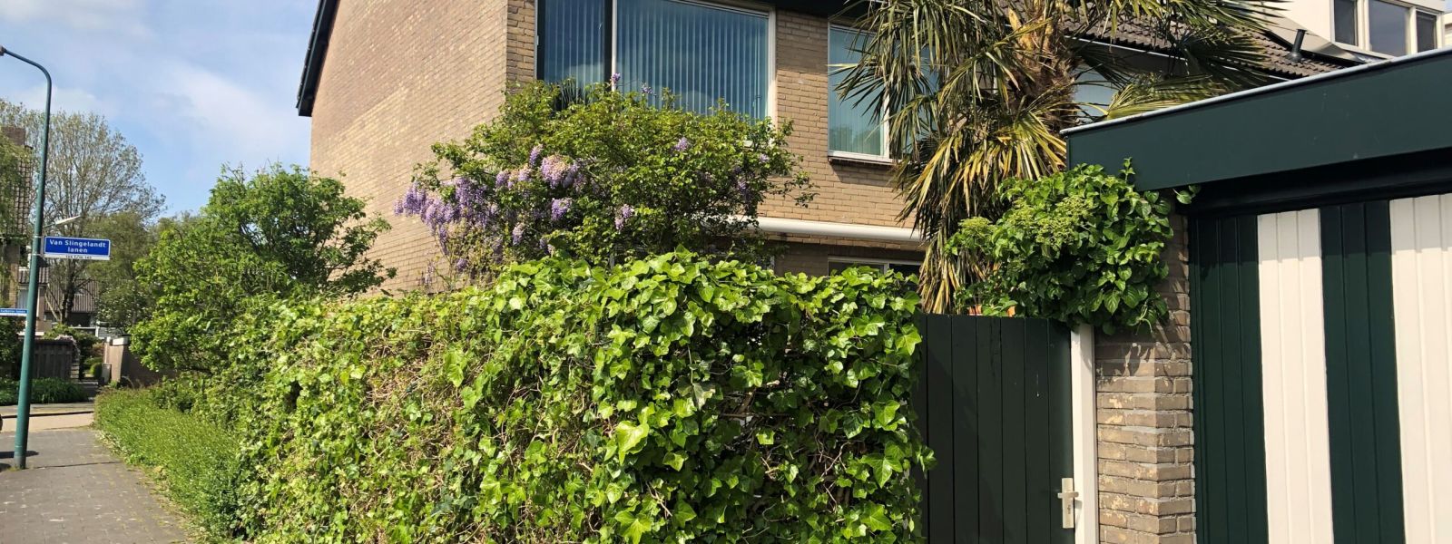 Wij hebben een klimop-haag langs ons huis. Deze houden we niet als een strakke lijn gesnoeid. We knippen de haag in delen terug, en laten de klimop waar het kan wat meer de vrije loop.