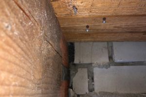 Een oud huis zit vol met naden en kieren. Langs de houten balken konden we vanaf binnen de spouw inkijken. Tegelijk met de verbouwing van de woonkamer hebben we de balkkoppen goed afgedicht.