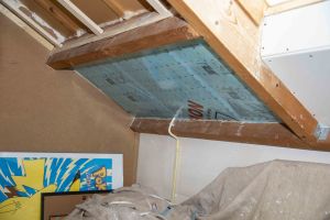 Het schuine dak van onze woning begint al op de eerste verdieping. In het midden van de woning (onder de nok) ligt een bak die onze zolder vormt. Dit maakt de kamers heel luchtig en ruim met een hoog (schuin)plafond maar het betekend ook veel warmteverlies. De vorige bewoners hebben de oude vlizotrap vervangen voor een vaste trap. Dit maakt de zolder veel beter toegankelijker maar ook dit heeft het nadeel van extra warmte verlies. Daarom wij begin 2021 het hele dak van binnenuit na geïsoleerd.