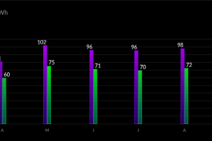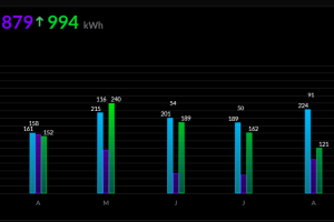 *De batterij is echt bedoeld om de pieken in levering (s’avonds) en teruglevering (overdag) te verminderen en je eigen opgewekte zonne-energie nuttiger te gebruiken. Bij ons, in combinatie met de warmtepomp en warmtepomp boiler resulteert dit (sinds maart) in een eigen gebruik van maar liefst 56,6% van onze opgewekte zonne-energie. Voorheen was dit minder dan 30% (zie grafiek Solar consumption)