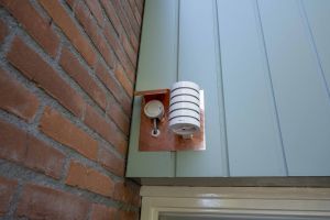 *Naast Homewizard hebben wij ook een (binnen en buiten) weerstation van Netatmo. Binnen geeft een aantal (gimmickachtige) waardes zoals temperatuur, luchtvochtigheid, Geluidsniveau en CO2 gehalte aan, Buiten geeft de luchtdruk, luchtvochtigheid en temperatuur aan. Vooral die laatste is voor ons interessant omdat dit weer helpt bij het instellen en bijstellen van de stooklijn van de warmtepomp (temperatuur Cv-water tegenover buiten temperatuur). De externe voeler van de warmtepomp (links op foto) en het buitenstation van Netatmo (rechts op foto) hangen naast elkaar op een plek uit de wind in de schaduw.