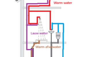 Een verticale douche WTW heeft ruimte nodig, onze douche zit op de eerste verdieping, de afvoer loopt door een koof naar beneden. Wij hadden genoeg ruimte om de WTW buis parallel naast de afvoer te plaatsen.