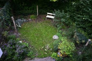 Toen wij hier kwamen wonen was de hele achtertuin betegeld, naast het huis liep een modderpad en de voortuin was overwoekerd met bosjes waaronder kale grond zat.