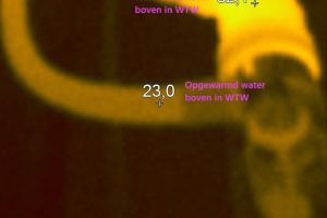 Het is ongelooflijk hoeveel foto’s ik heb waar de douche WTW net niet op staat, voor nu moeten we het doen met een foto van de fabrikant. Gelukkig hebben we er wel een Fluke thermal imager op gezet toen de douche WTW nog zichtbaar was.