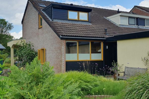 Eindwoning met 2 slaapkamers, klein zolderkamertje waaraan later dakkapel is gebouwd en een in 2012 aangebouwde serre.