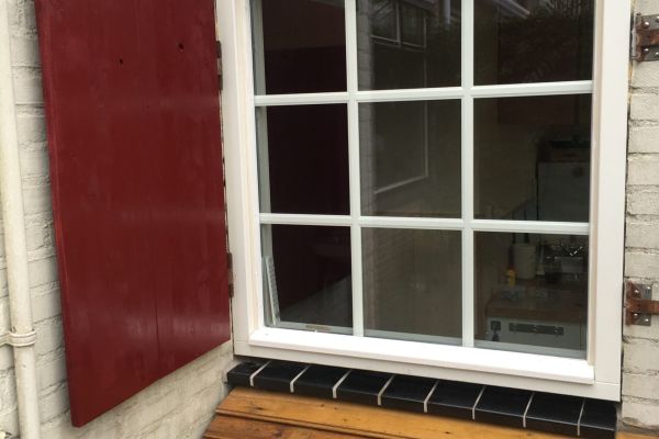 Kozijnen geschilderd met verf dat gemalen is op verfmolen de Kat in de Zaanse Schans.