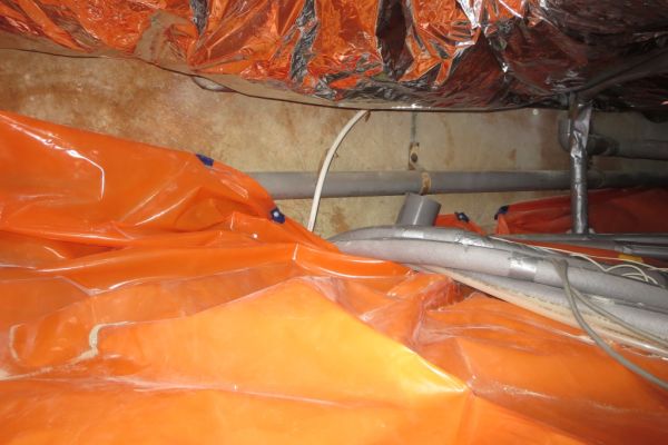 Stap 2 was het na-isoleren van deze hoekwoning uit 1980 (2007): Milieuvriendelijke kruipruimte isolatie van Tonson: betaalbaar, hoge Rc-waarde en behaaglijk. Na-isolatie van het dak (2007). Van binnenuit met 12cm Isover glaswoldekens afgedicht. Afgewerkt met vocht-lucht membraan-folie van Isover. Geen risico op houtrot en schimmel van binnenuit. Goede isolatie. Zelf uit te voeren.