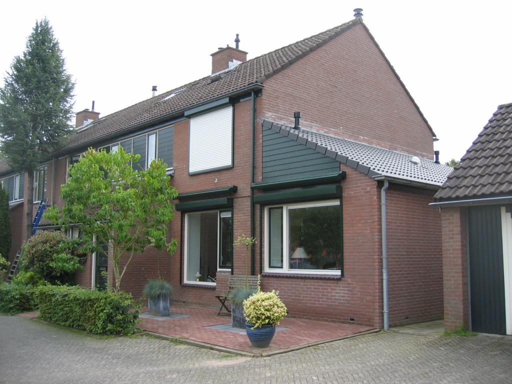 Rolluiken aangebracht (2007) : bescherming tegen extreme zomerwarmte en winterkou. Bovendien Inbraakbescherming voor deze hoekwoning aan einde woonerf, richting park.