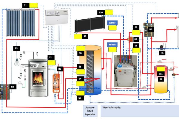 Zonnecollector, 24 heatpipes, 600 ltr buffervat.