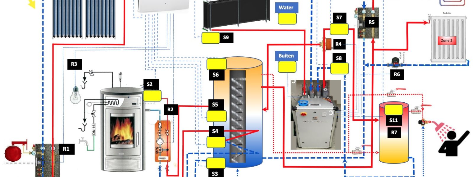 Zonnecollector, 24 heatpipes, 600 ltr buffervat.