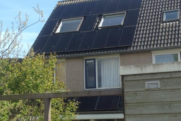 Ons huis is vrijwel energie-neutraal voor ALLE energie (ook verwarming) tijdens de duurzame huizenroute. Dat hebben we gedaan door 68 dunnefilmpanelen te leggen op 3 daken (ook een NNW-dak), een Stiebel Eltron doorstromer voor het warmtapwater (=elektrische geiser) en er komt dit najaar een luchtwaterwarmtepomp met COP 5,5 voor de verwarming. De gasketel is verwijderd. Radiatoren zijn vervangen door laag temperatuur JAGA convectoren. Alleen de gaskookplaat is nog in functie. Doel is om energieneutraal en gasloos te worden in een bestaande woning uit 1994. Sinds de installatie van de zonnepanelen in mei 2015 (die ook bij mist werken) hebben we al 46 MWh opgewekt. Voldoende om de benodigde energie van de warmtepomp op te wekken. Deze is geinstallerd op 4 november 2016.