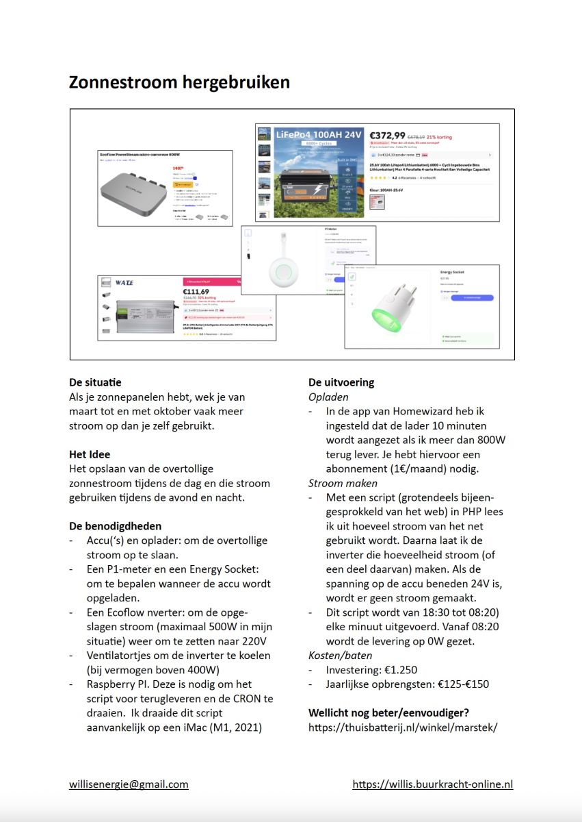 – Zelfgebouwde 5Kwh thuisaccu (nov 2024) voor opslag en hergebruik van zonnestroom in de avond- en nachturen van het voorjaar tot het najaar.