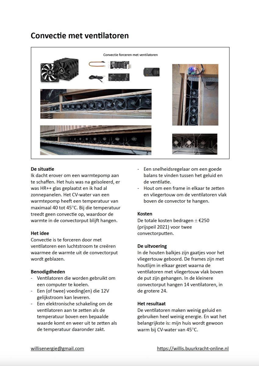 – Zelfgemaakte ventilatoren die alleen draaien als de convectorput verwarmd wordt: feb 2022