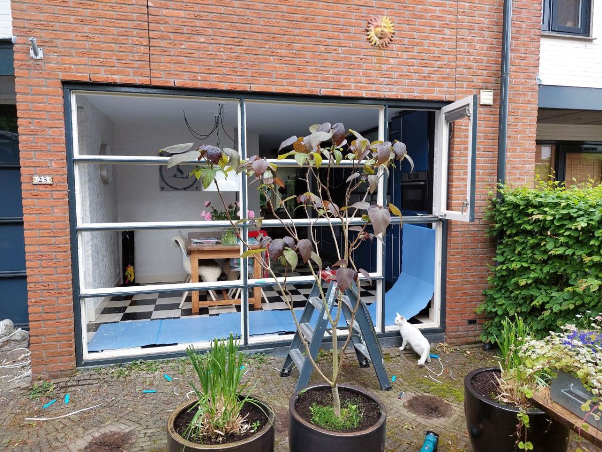 Juni 2022 zijn de spouwmuren van de woning na geïsoleerd met minerale wol. Daartoe zijn op regelmatige afstanden gaten in de buitenburen geboord en is minerale wol in de spouw geblazen