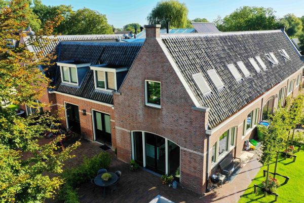 Hoek woning in voormalig bedrijfspand (houtzagerij en opslag van aannemer, 2002), totaal 350 m2 en ca 1100 m3 inhoud.