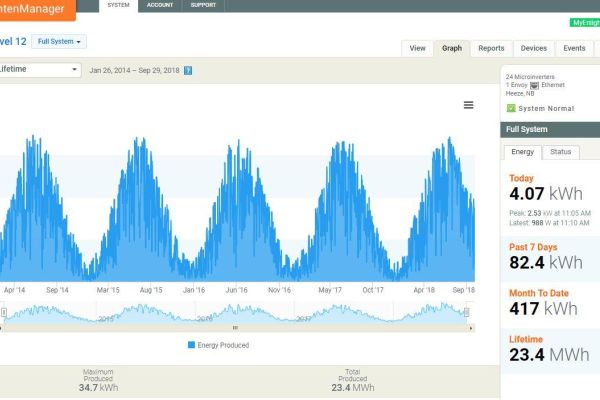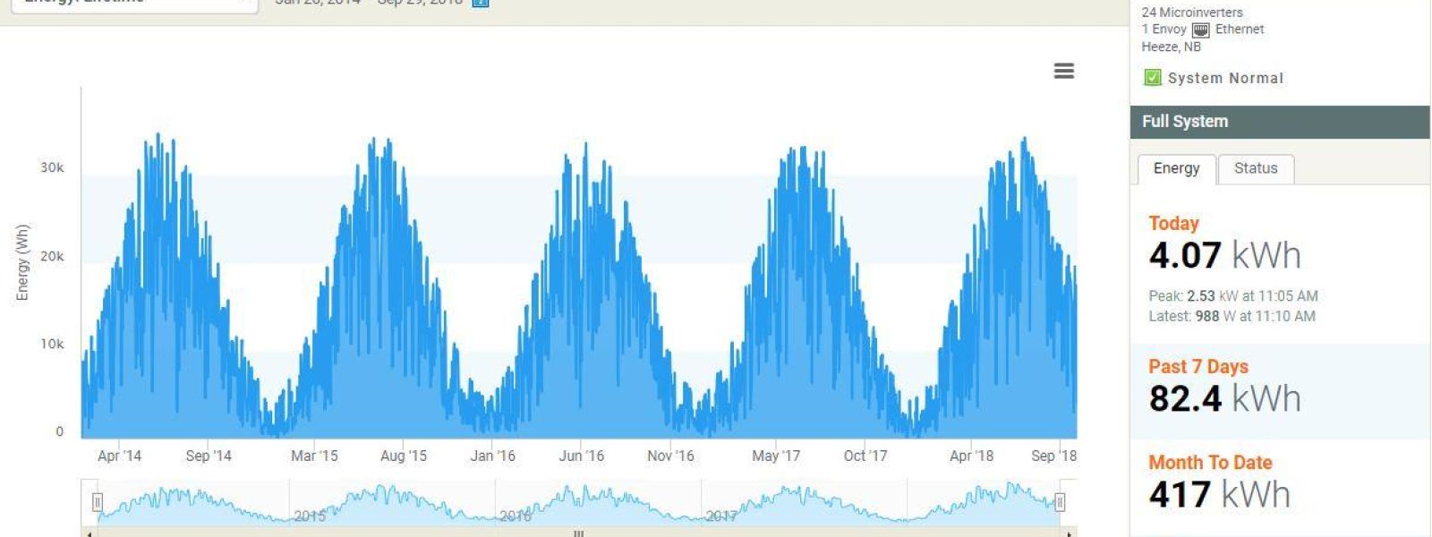 De woning en het E gebruik worden gecompenseerd met 24 panelen 250 Wp en 12 panelen 405 Wp. De uiteindelijke opbrengst is 8000 kWh. Hierdoor is de woning EPC = 0.