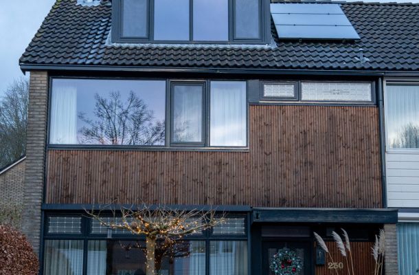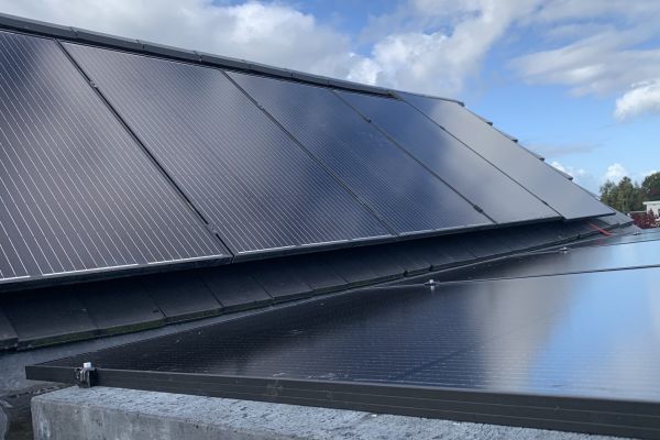 12,85kWp aan zonnepanelen, verdeeld over zuid, noord & west