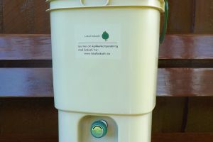 Bokashi bakken voor groente/fruitafval. Daarna wordt het verwerkt in de voedseltuin.