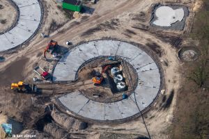Elke 12 woningen van één cirkel slaan 30m3 water op in ondergrondse tanks die we gebruiken voor toiletten, wasmachines en tuinen.