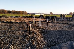 Glasschuim, 60cm dik als fundering tot 20cm buiten de muren, Rc 8