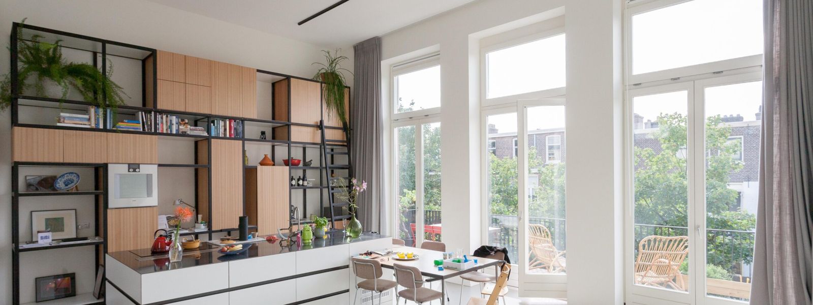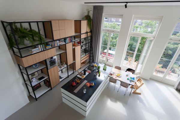 19e eeuwse school in de binnenstad van Amsterdam is getransformeerd in hypermoderne gezinsappartementen.