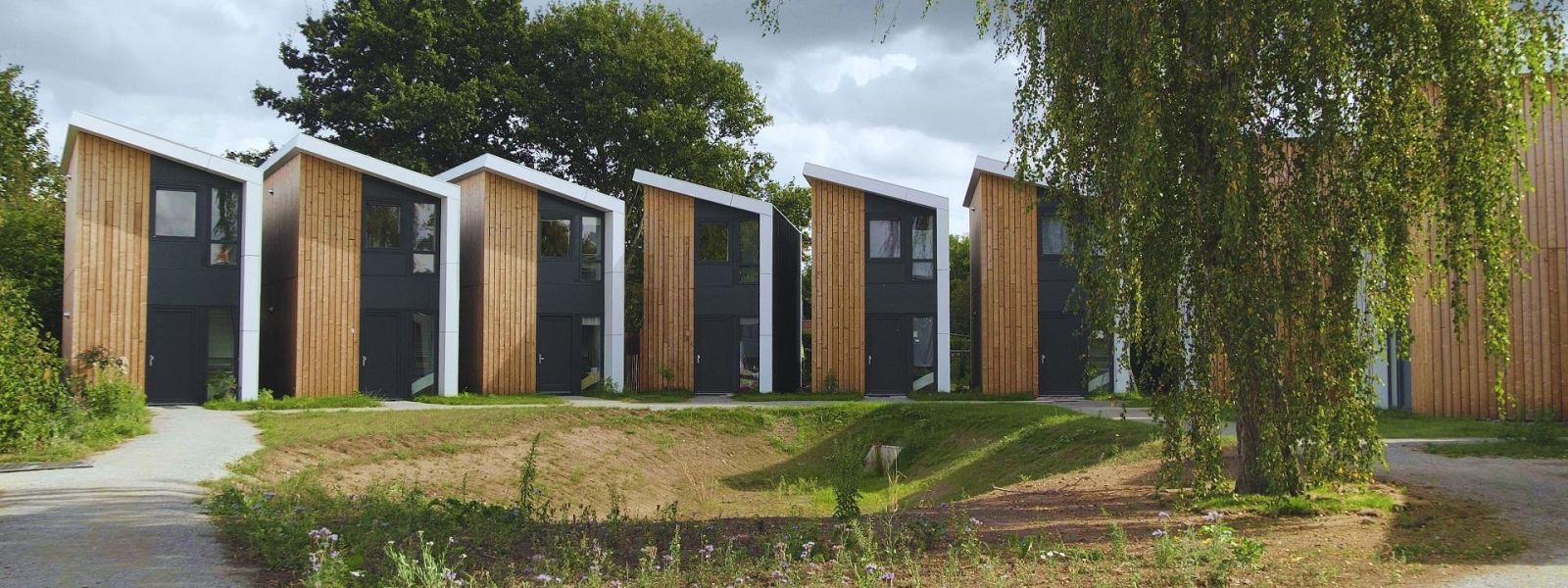 De woning staat op een project van tien woningen: tien duurzame, kleinere, prefab woningen. Energieneutraal en sommige nul-op-de-meter. Prefab houtbouw, goede isolatie, warmtepomp, zonnepanelen. Gezamenlijke voortuin met mobiele boomgaard, wadi (regenwater opvang van de daken).