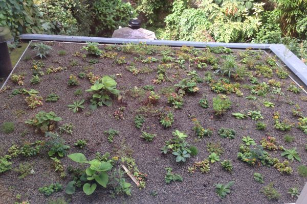 Op de uitbouw is in 2014 een groen dak gerealiseerd, wat in de zomer ervoor zorgt dat het binnen aangenaam koel blijft