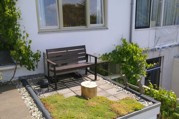 Voor verwarming en tapwater wordt gebruik gemaakt van een lucht/water warmtepomp met een buffervat van 300 liter. De benodigde energie wordt opgewekt door middel van 8 zonnepanelen (300Wp/st).