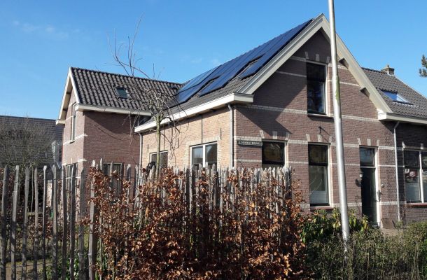 Hoewel ons huis vooroorlogs is, geen spouwmuren of vloerverwarming heeft en normale radiatoren kunnen we het huis met een 8 kW warmtepomp goed verwarmen. Ons electriceitsverbruik is 100% groen omdat het is afgedekt door zonnestroomdelen van een collectief zonnedak (postcoderoos project) en aandelen in een windmolen (WindCentrale).
