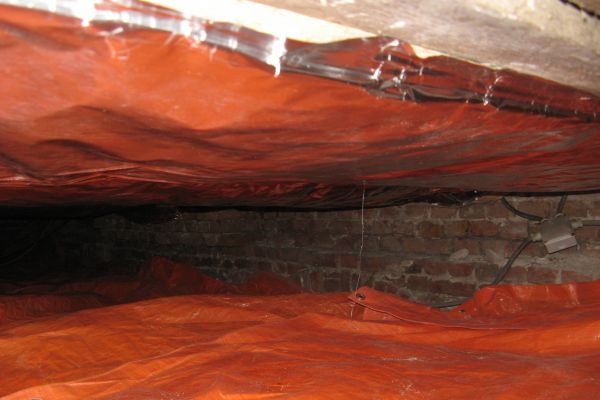 Vloer is deels opengemaakt om makkelijker te kunnen isoleren.