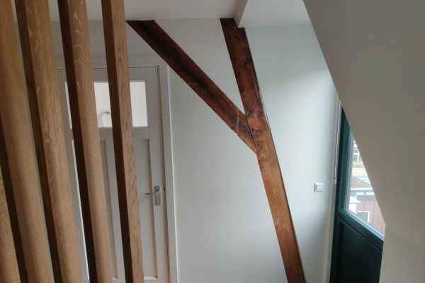 Een totaalrenovatie van een rijtjeswoning uit 1920. De originele begane grond houten vloer is vervangen door een schuimbeton vloer met vloerverwarming. De keukenuitbouw uit de jaren ’70 was zo slecht dat het helemaal opnieuw is gebouwd. De nieuwe keuken is uitstekend geïsoleerd zodat er geen deur meer nodig is tussen de woonkamer en de keuken. De ventilatie op de begane grond is apart van de rest van het huis. Een gebalanceerd ventilatiesysteem met warmteterugwinning (WTW) zorgt voor voldoende verse lucht met minimaal warmteverlies. De voor- en achtergevel zijn geïsoleerd aan de binnenkant met voorzetwanden van ecologische materialen, en hebben nieuwe kozijnen gekregen. De voorgevel is in eer hersteld na een mislukte renovatie van de vorige bewoners. De eerste verdieping is ook volledig aangepakt. De vloer is versterkt en geëgaliseerd, en er zijn een nieuwe badkamer en binnenwanden. De dakkapel van de achterkamer is opnieuw gebouwd en geïsoleerd tot de huidige standaard van nieuwbouw. Na de renovatie is het huis fijn, aangenaam en klaar voor nog 50 jaar woonplezier. Daarnaast verhogen deze ingrepen de toekomstige waarde van de woning en voorkomen schade.