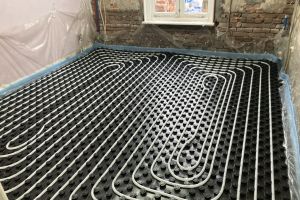 Na egaliseren van de vloer minimale dikte t.b.v. de vloerverwarming