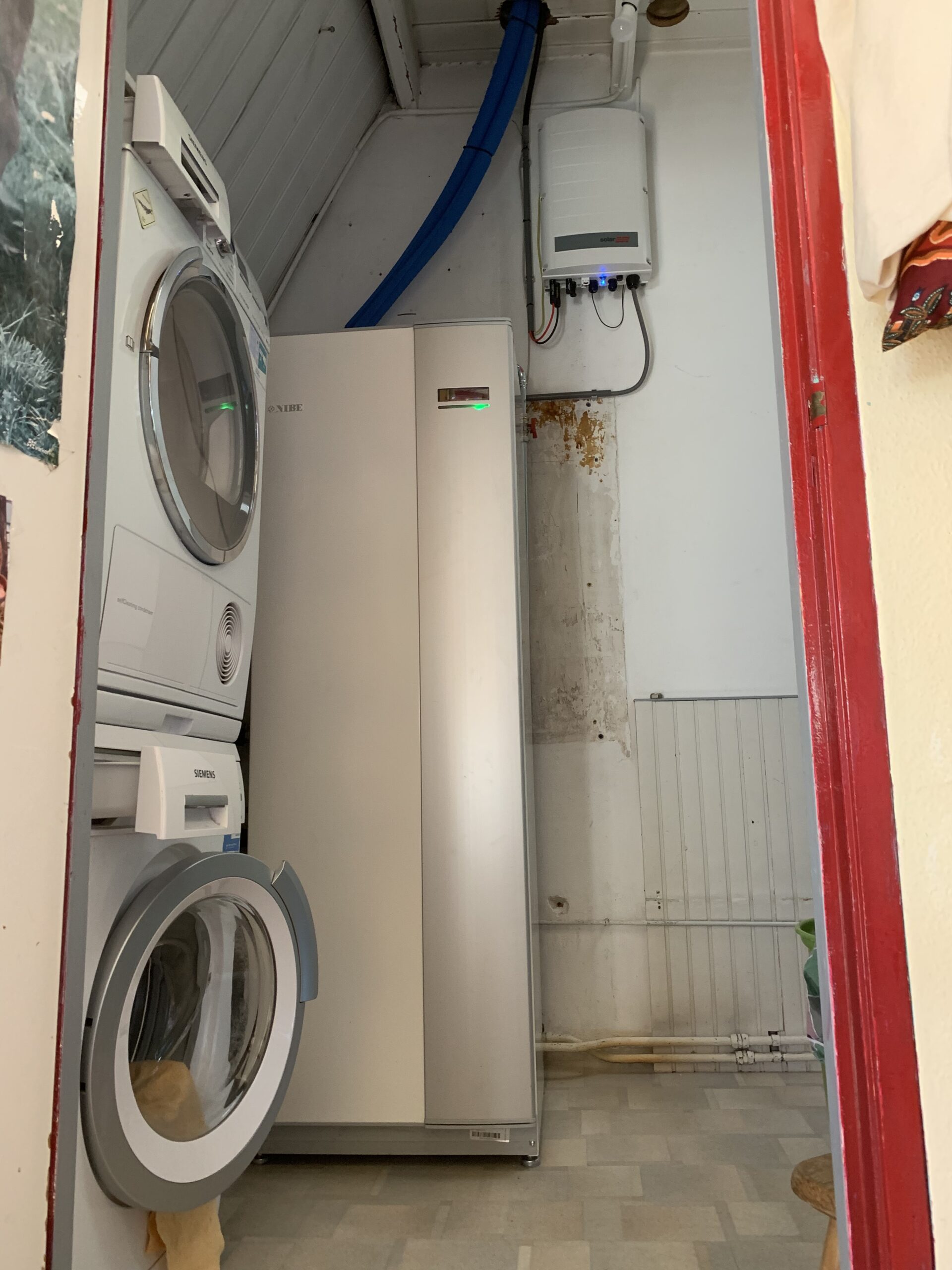 Tussenwoning uit begin 20e eeuw, dus steens muren en geen spouwmuren. Onze woning is sinds juni 2019 compleet aardgasvrij. We hebben de woning geïsoleerd: vloeren begane grond, ramen, deels buitenmuren, balkon en het platte dak en pannendak. Onze woning is voorzien van een all-electric warmtepomp met een tapwaterbuffer en PVT-panelen en zonnepanelen. De warmte wordt uitsluitend geproduceerd door de PVT-panelen, wij hebben dus geen buiten-unit met een ventilator. We verwarmen de woning m.b.v. de reeds aanwezige radiatoren. We hebben geen vloerverwarming.