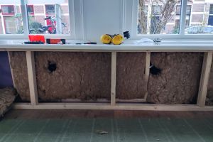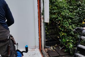 We hebben een bestaande koudebrug bij de serre opgelost door isolatie aan de buitenzijde van de gevel. We hadden last van condens en schimmel op een deel van het stalen frame van het glazen serredak.