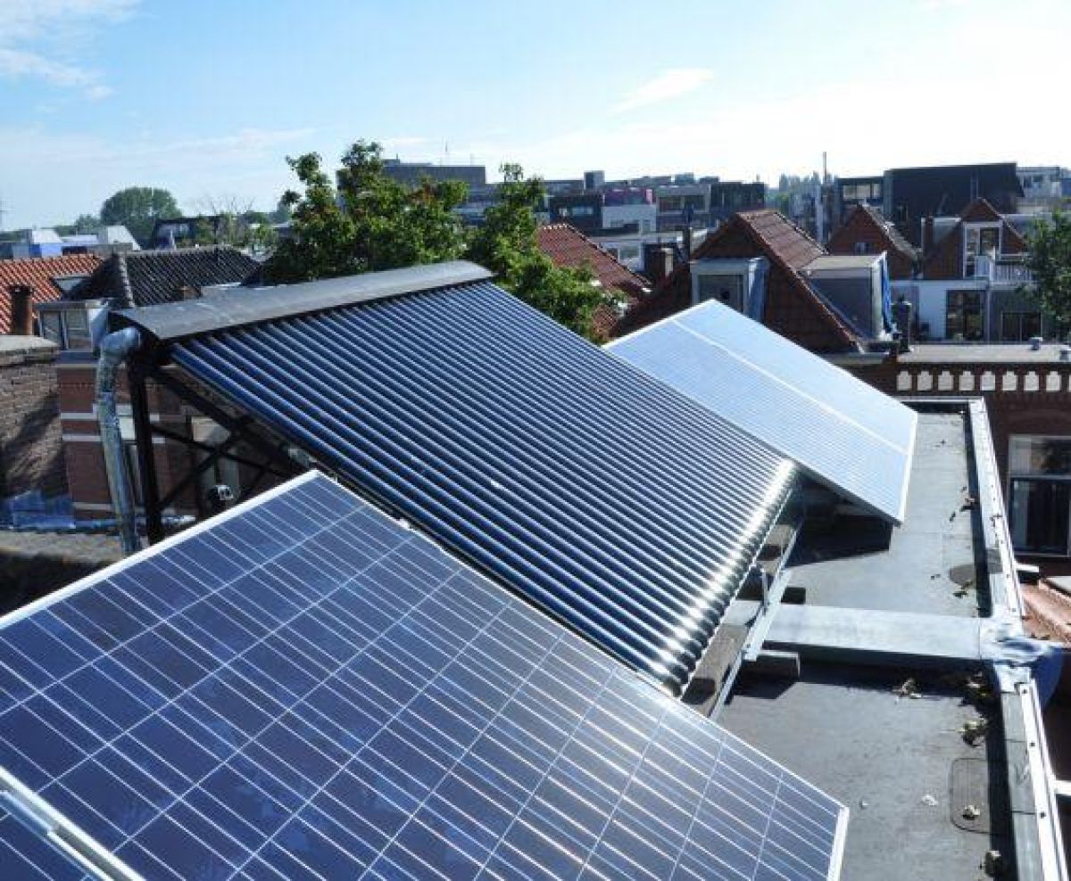 Zonneboiler voor tapwater, PV-panelen en een HR-gasketel, thuisbatterij