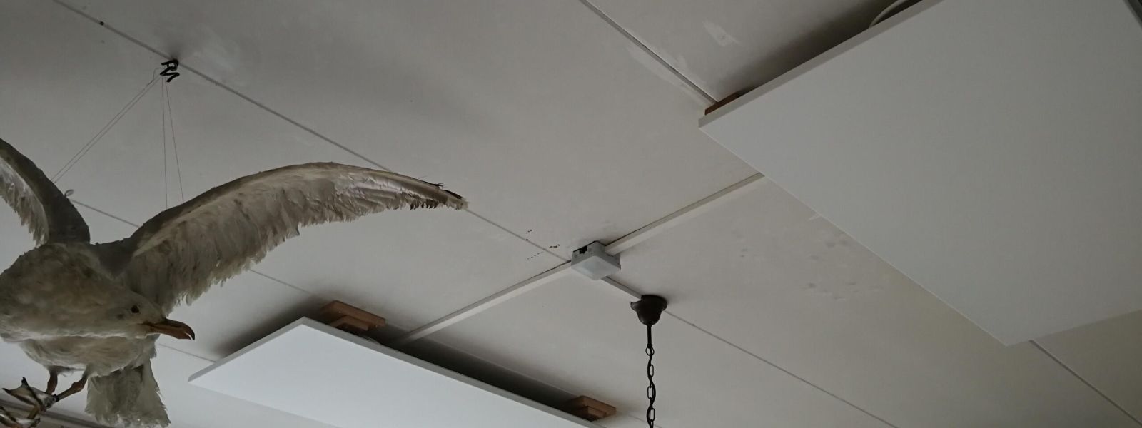 Lage temperatuur Easy Infraroodpanelen van 800Watt aan het plafond, deze worden onder ca.100graden, bovenop 50graden, met 1 relais en draaithermostaat voor 2 panelen.