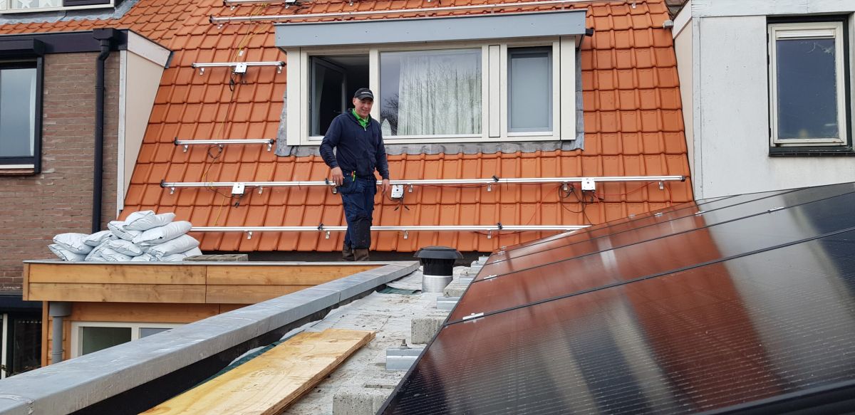 Zonnepanelen in combinatie met groendak moet goed zijn, maar er zijn maar weinig systemen die voldoende hoog zijn om je groendak onder te leggen. Bij de aannemer op aangedrongen om te kiezen voor iets dat 10 cm hoger is dan normaal. Dat kon net ivm de eisen ri de buren.