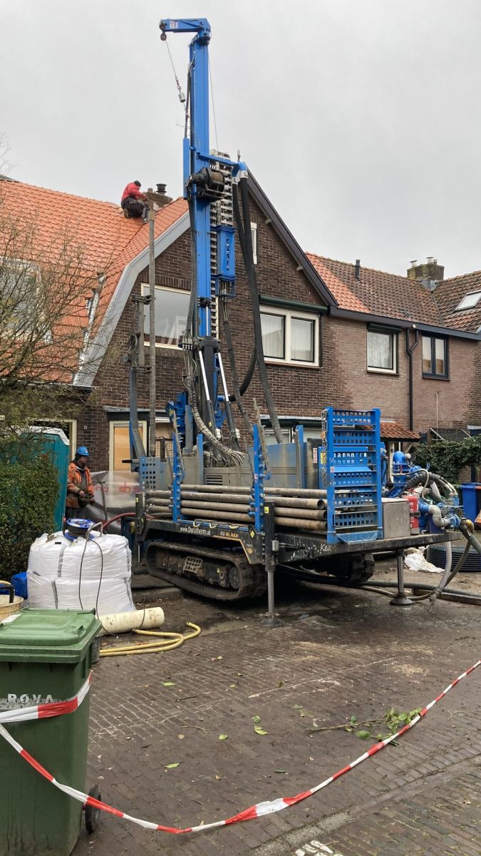 De woning wordt verwarmd door middel van een bodemwarmtepomp. De warmte wordt van 130 meter diep gehaald.