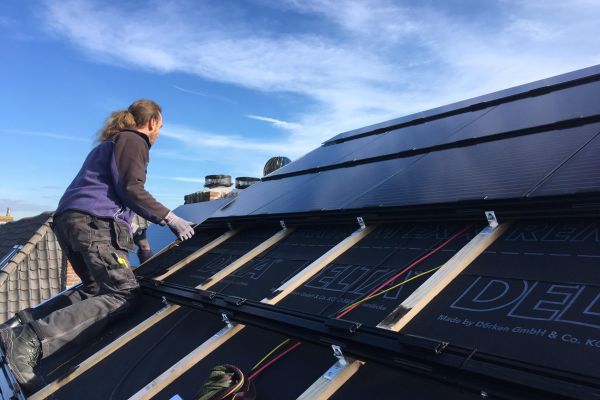 Dakopbouw, verhoogde nok met geïntegreerde zonnepanelen Bitile van Robisol.