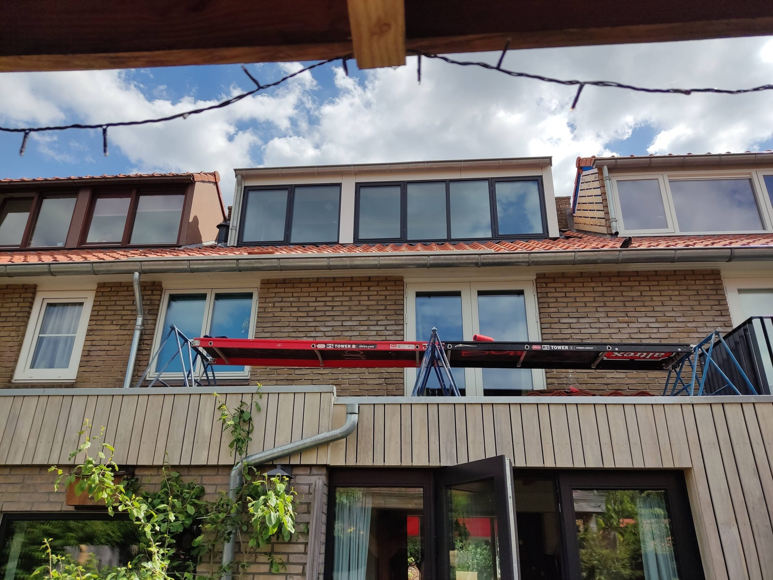 Van buiten isolatie is fijner tegen hitte. PIR-platen zijn wel geen geluid isolatie dus overvliegende vliegtuigen hoor je wel in de uitbouw.