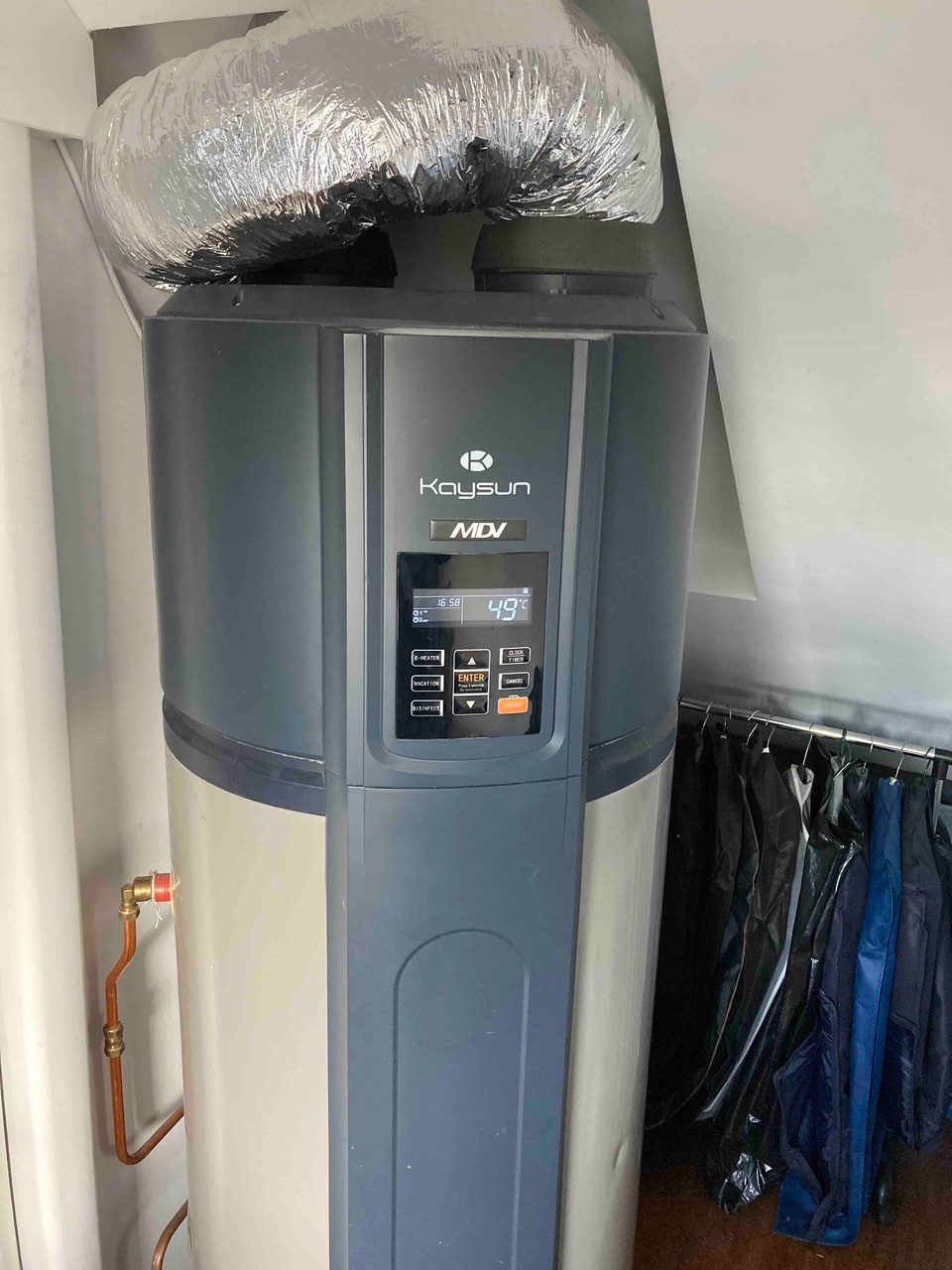 Veel uitzoekwerk, weinig ondersteuning van professionals. Luchtwarmtepomp-warmwaterboiler op de voorzolder maakt te veel herrie bij opwarming.