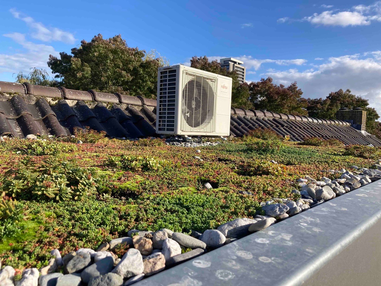 Gas afgesloten, geheel elektrisch. Alleen begane grond middels vloerverwarming verwarmd met luchtwarmtepomp (Fujitsu). Boven alle verwarmingen en leidingen verwijderd, passieve restwarmte is voldoende voor slaapkamers. 22 Avancis-zonnepanelen à 145 Wp (vrijwel plat onder afschot: voor de esthetiek) op de schuur en 12 Canadian Solar Mono Black à 310 Wp op de voorkant van het huis. Extra groene stroom uit 3 Windmolen-aandelen. Warm water van luchtwarmtepomp-boiler op voorzolder (300 liter, zuigt lucht af uit woning). HR-houtkachel voor als het echt koud is. Uiteraard alles LED en zuinige apparaten.